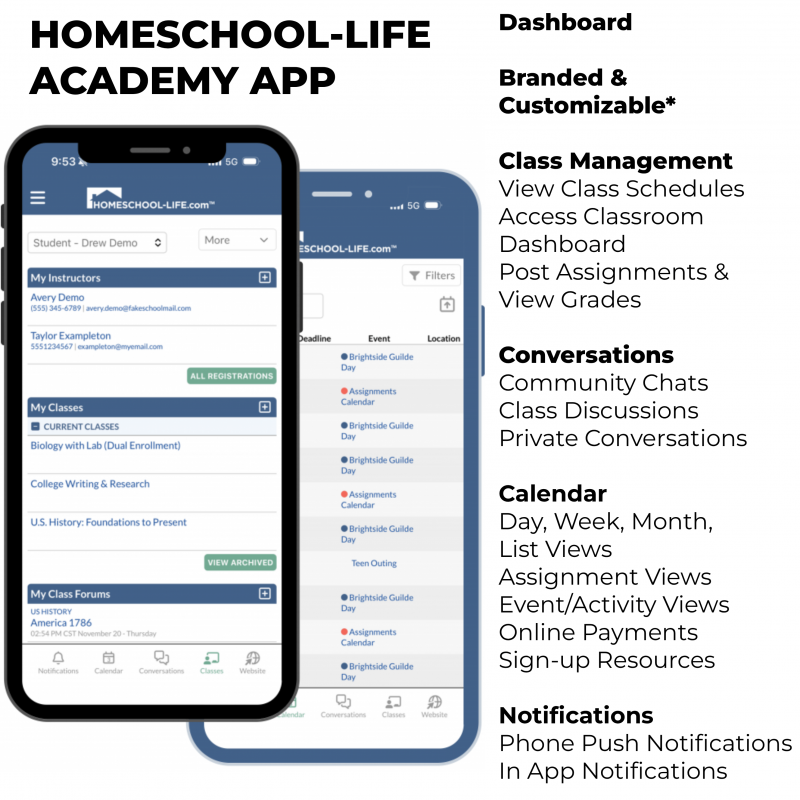 All Academy Accounts come with access to Homeschool-Life Branded mobile app