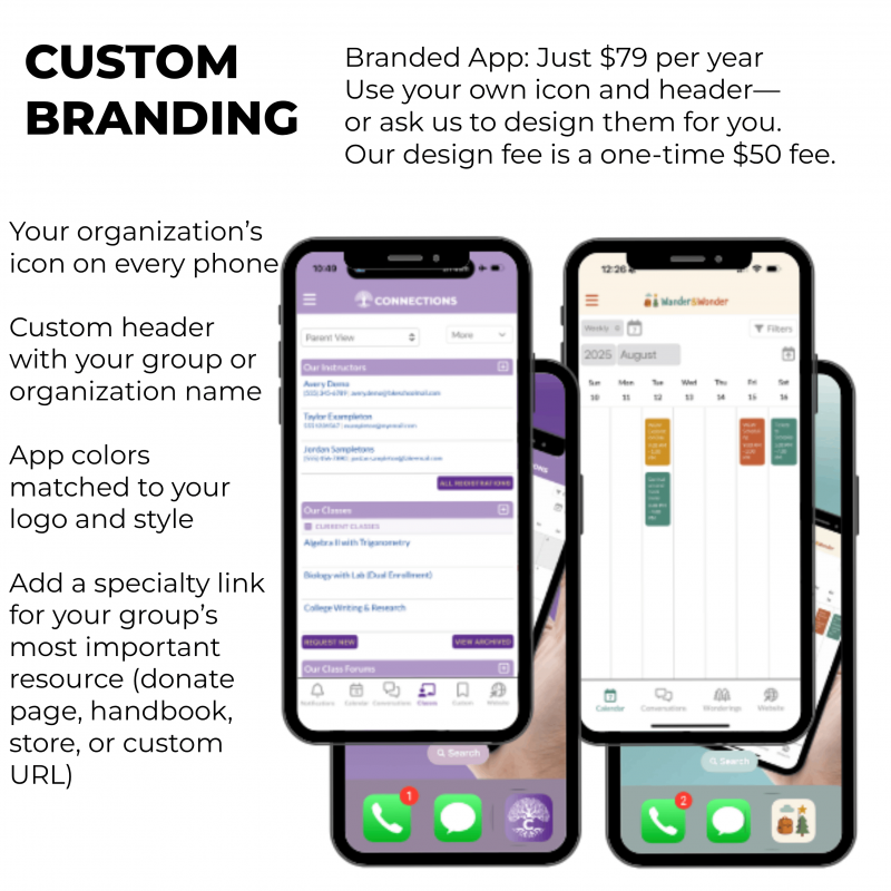 *Custom branding for your Homeschool-Life app only $79 per year